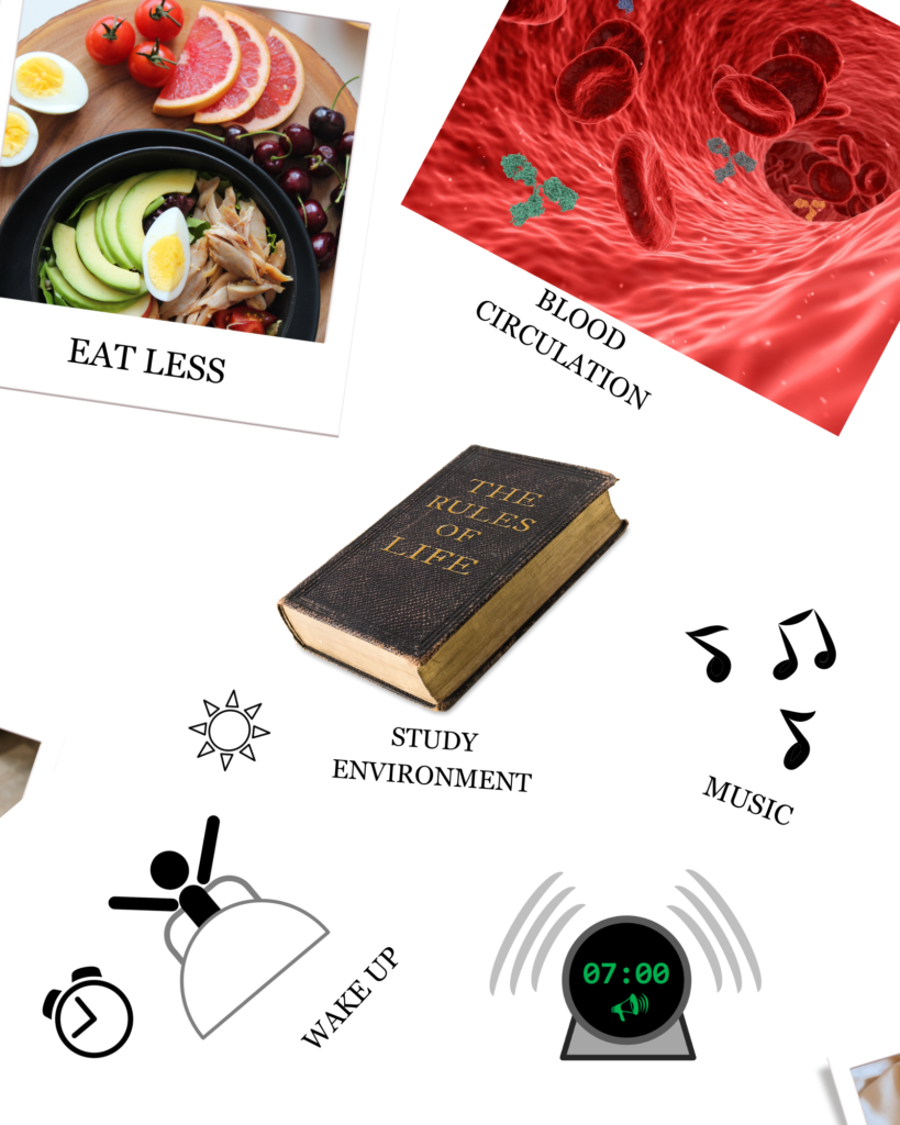 Action Step: Study in well-lit areas, preferably with natural sunlight. If natural light isn’t available, ensure your study room is brightly lit. Avoid studying in dimly lit rooms to prevent sleepiness.